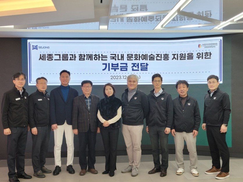 협회, 세종공업(주)와 문화예술진흥지원을 위한 기부(후원)약정 체결 및 기부금 전달식 개최('23.12.13)