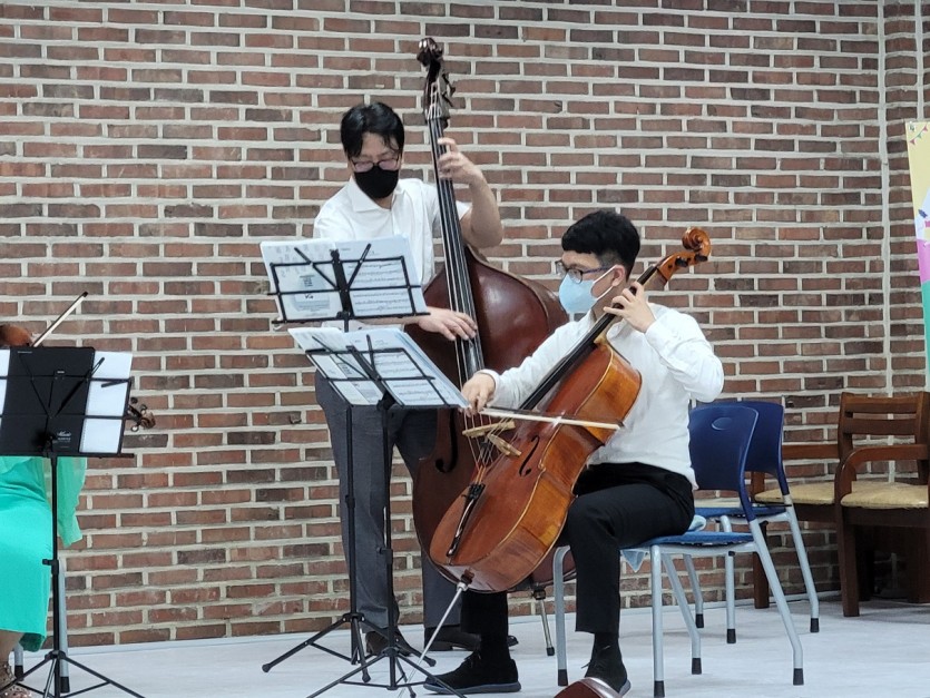 - 이곳 장애인복지관을 주무대로 활동하는 장애인 연주자(피아노-함성재, 첼로-지창범)와 본 공연단과 합동 연주를 진행함으로써 장애와 비장애가 어우러진 앙상블을 연출