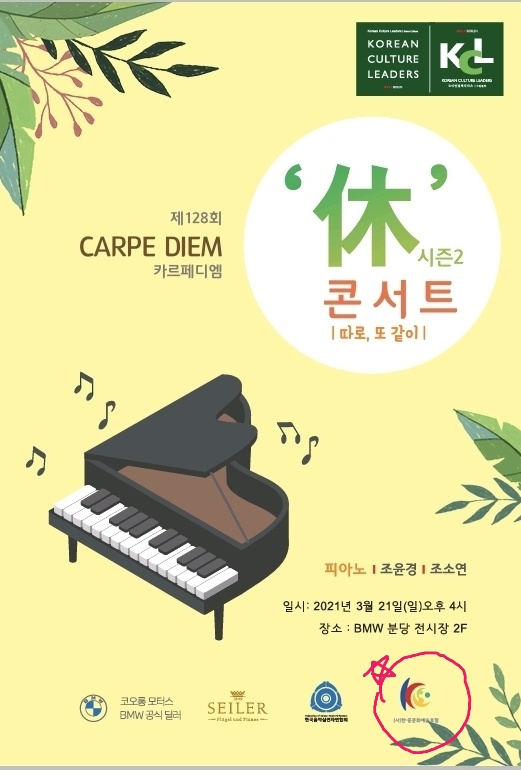 협회, 코리아컬쳐리더스(김지현대표)와 공동 무료음악회 개최(3.21)